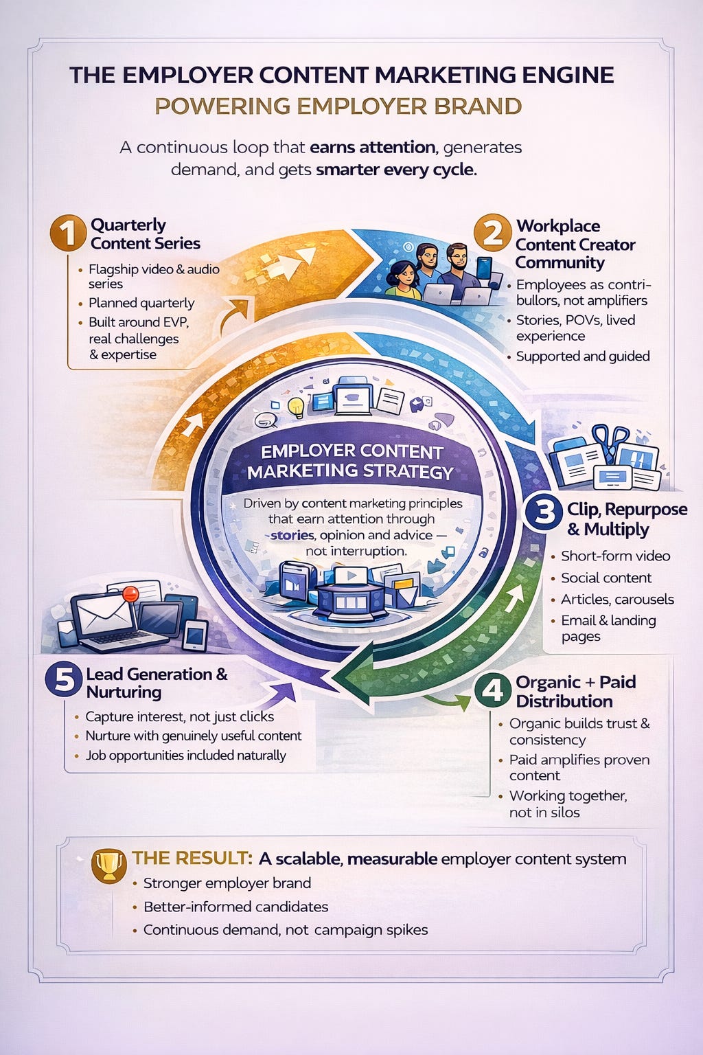 This is why I put together this one-pager - the Employer Content Marketing Engine — drawing on years of working with employer brand and talent teams, and conversations with over 140 guests on my podcast.