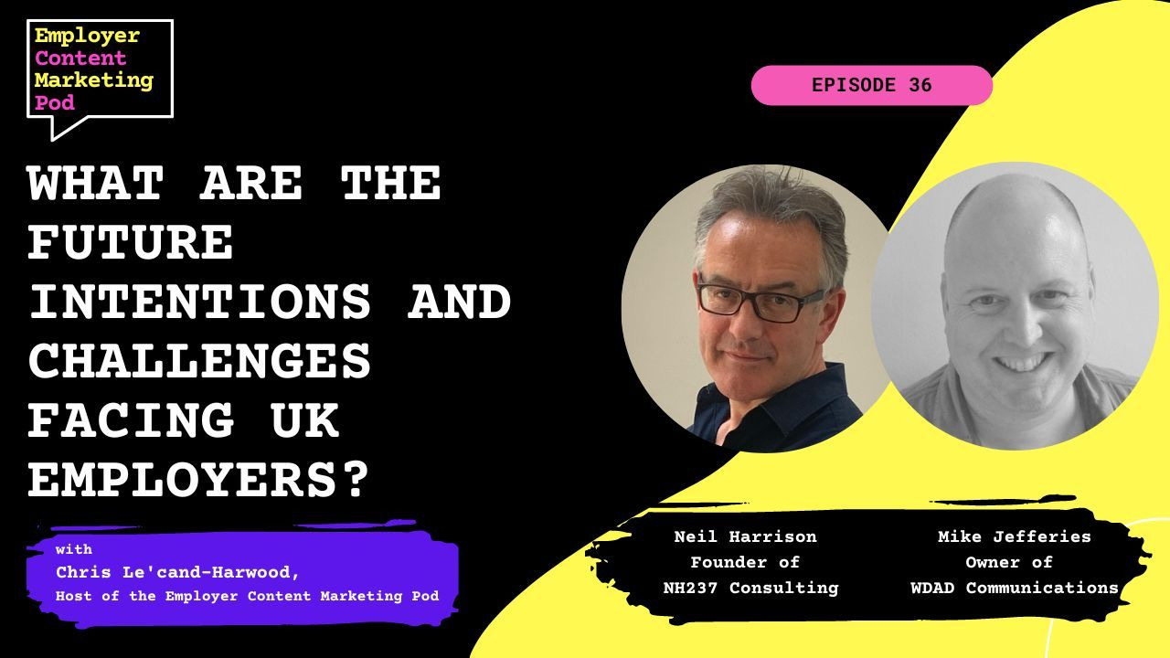 In this episode, we talk about employer branding and the future intentions and challenges of UK employers. This is based on extensive research produced by Neil Harrison of NH237 Consulting, in partnership with WDAD Communications.