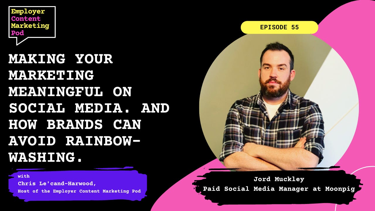 In Episode 55 of the Employer Content Marketing Pod, I chat with Jord Muckley. Jord has been in social media since his days at Coventry University and Aston University. He’s been a head of social at a TikTok agency and he’s recently joined the social media team at Moonpig. And with Pride Month happening last month, he has a lot to say about how brands should get involved in LGBTQ+ campaigning.