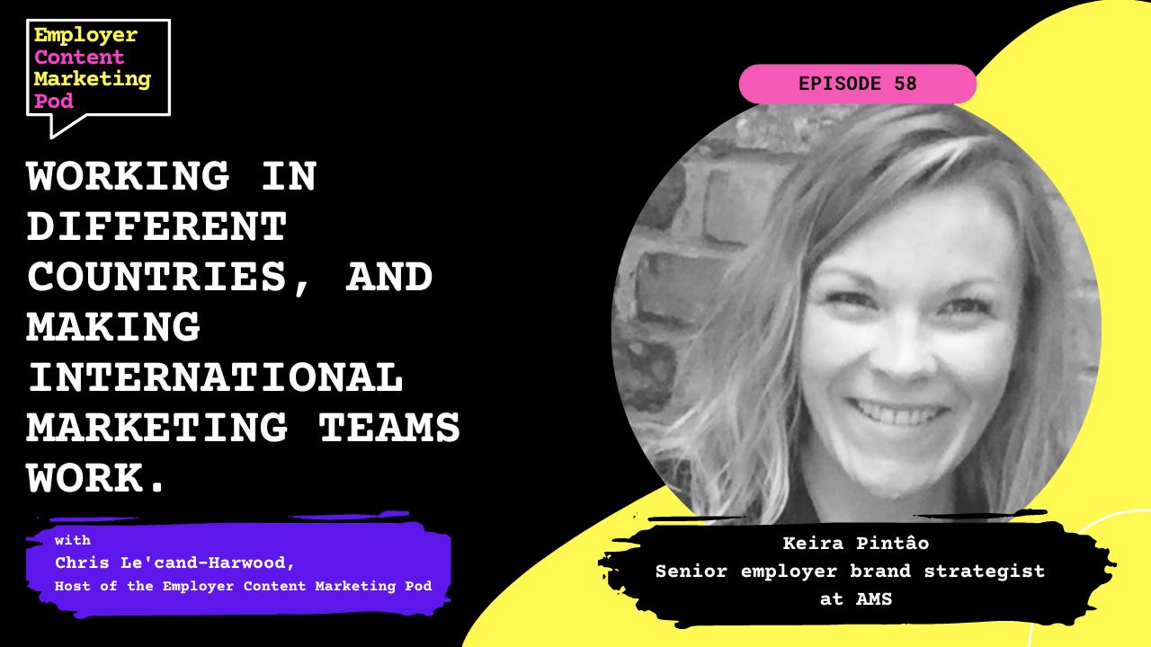 What does living and working in different countries bring to your marketing career? And how do you make international marketing teams work? Welcome to Episode 58 of the Employer Content Marketing Pod. I’m chatting with Keira Pintão, Senior Employer Brand Strategist at AMS.